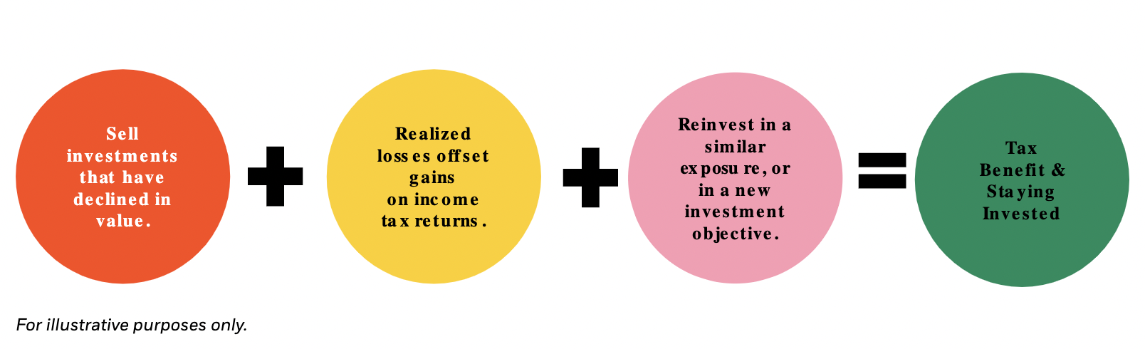 Tax-loss harvesting is the act of selling assets that have taken a loss, then using those realized losses to offset realized capital gains as well as ordinary income in a taxable account.